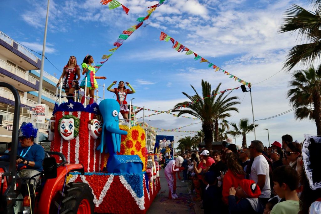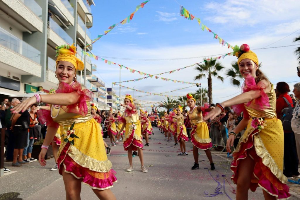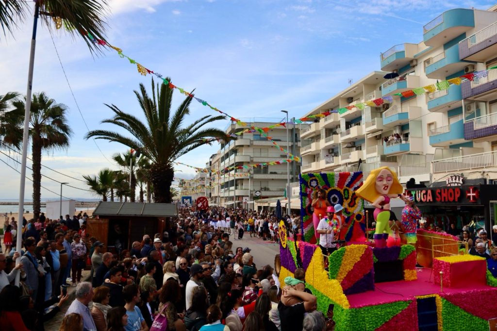 O Carnaval de Quarteira do dia 13 de fevereiro, ao longo da Avenida Infante Sagres, com o corso carnavalesco.