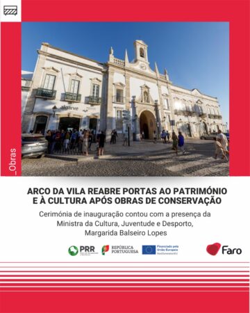 O Presidente da Câmara realçou, ainda, o simbolismo do Arco como metáfora da política cultural do município: “Este Arco convida-nos a atravessar, não apenas o limiar entre o passado e o futuro, mas encarna a vontade de transformar cada pedra da nossa história numa força viva de desenvolvimento, através da qual reforçamos a coesão social e buscamos ser mais justos e mais rigorosos na utilização dos recursos públicos”.A ministra da Cultura referiu-se à relevância do restauro para o turismo sustentável e para a autoestima regional, considerando o Arco da Vila “um portal que abre horizontes a quem cá entra e a quem cá vive”, horizontes que permitem ter no Património um bem considerável e proporcionador de desenvolvimento.Recordamos que a reabilitação do Arco da Vila resulta de um acordo entre a autarquia e o Fundo de Salvaguarda do Património Cultural, ao abrigo do Plano de Recuperação e Resiliência, tendo representado um investimento global de 250 mil euros. O Arco da Vila, mandado erguer em 1812 sobre a antiga Porta Árabe, é um símbolo incontornável da vivência farense.