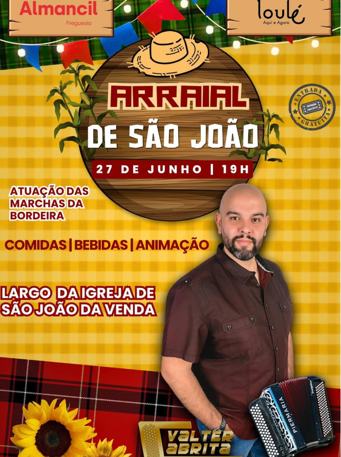 O espírito das festas populares chega a Almancil com o imperdível Arraial de São João, no próximo dia 27 de junho, a partir das 19h, no Largo da Igreja de São João da Venda.