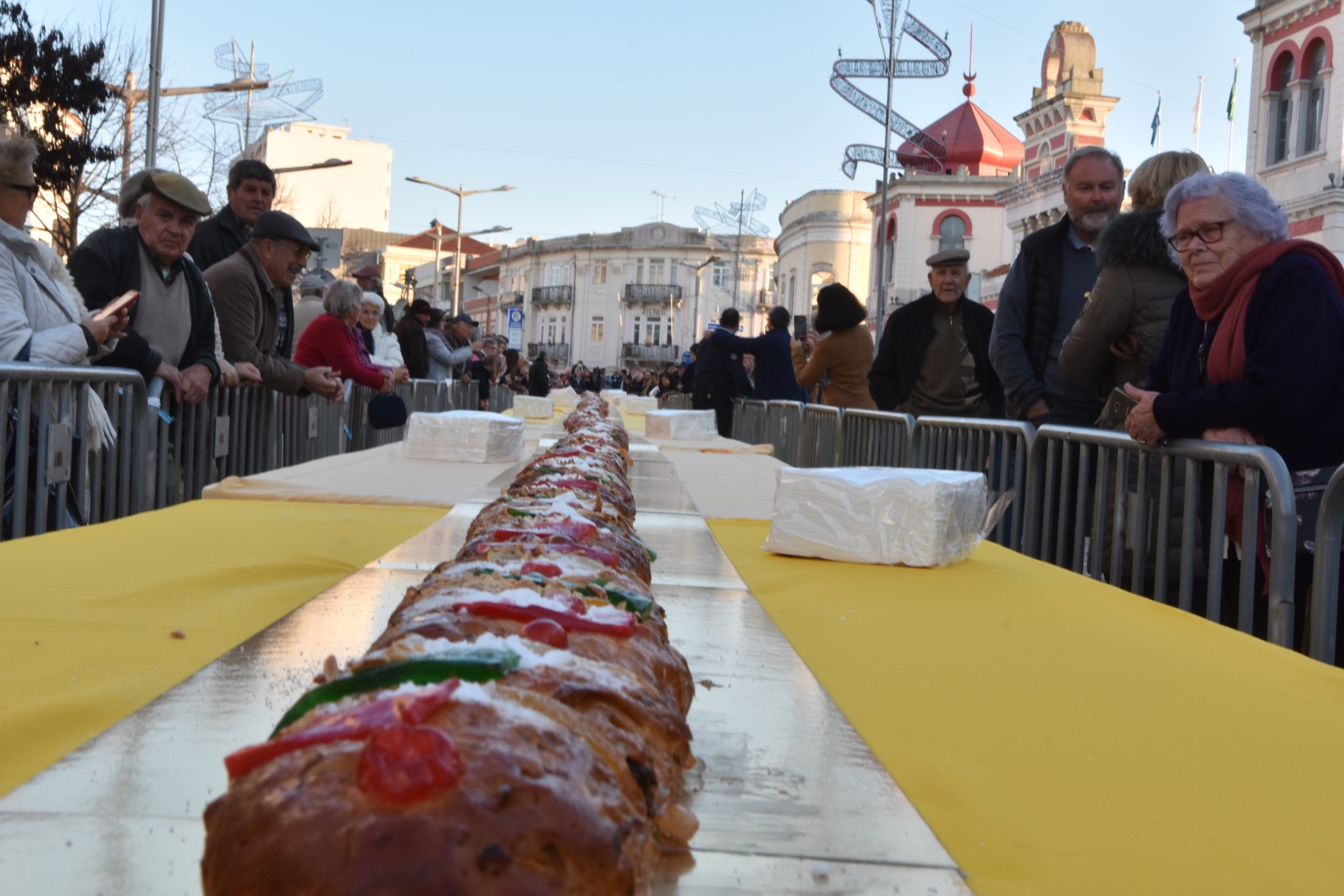 Ao longo de toda a rua em frente aos Paços do Concelho será servida o bolo-rei cuja confeção estará, mais uma vez, a cargo da pastelaria Loulé Doce.