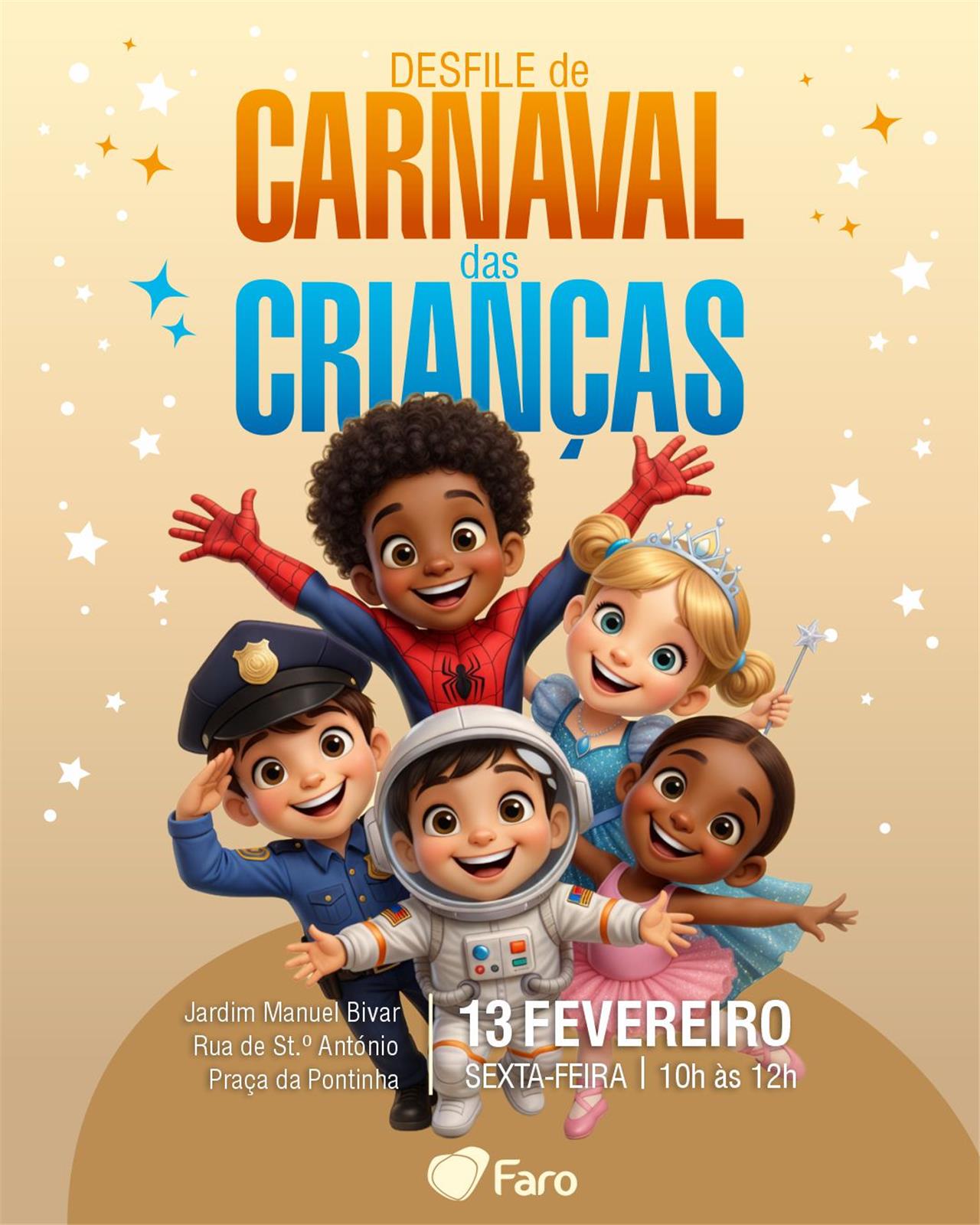 O Desfile de Carnaval das Crianças dos estabelecimentos escolares de Faro, organizado pela Câmara Municipal de Faro (CMF), terá lugar no próximo dia 13 de fevereiro de 2026, na zona da Pontinha, em Faro.