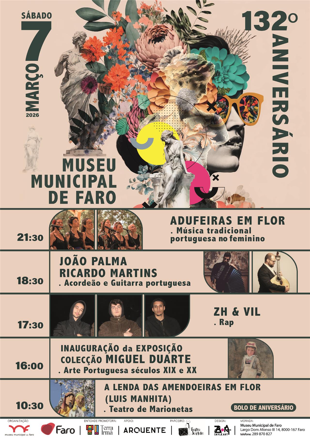 O Museu Municipal de Faro (MMF) celebra, no próximo dia 7 de março (sábado), o seu 132.º aniversário, com um programa cultural diversificado e portas abertas até às 23h00, assinalando mais de um século de contributo para a vida cultural da cidade e da região.