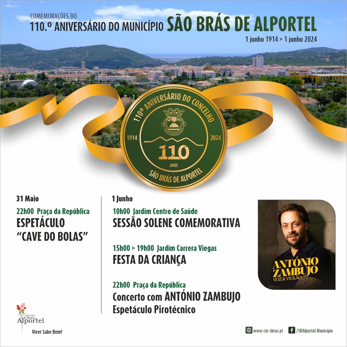 O concelho de São Brás de Alportel completa 110 anos da sua fundação no próximo sábado, 1 de junho. Uma data comemorada pelos são-brasenses “de gema” e de coração, com iniciativas solenes, a Festa da Criança, homenagem ao fundador João Rosa Beatriz, exposições e dois espetáculos na Praça da República que culminam com a atuação do sobejamente conhecido artista português: António Zambujo.