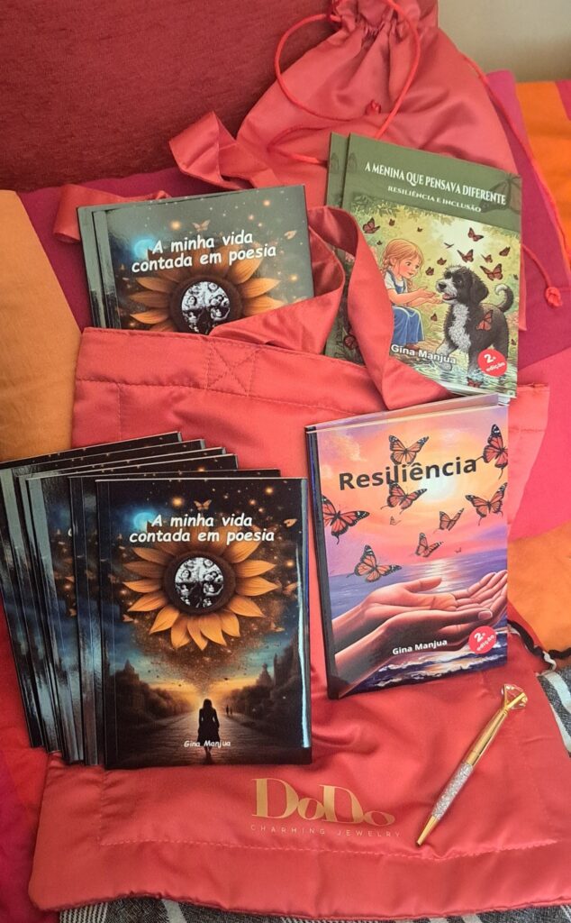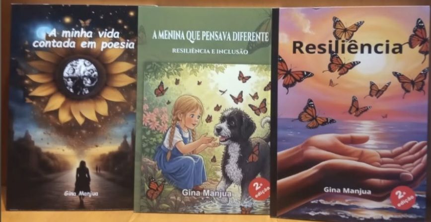 Gina Manjua é autora e activista cultural, com um trabalho centrado na inclusão, na dignidade humana e na expressão artística como ferramenta de participação social. A sua escrita parte da experiência vivida e cruza literatura, arte e reflexão, abordando temas como resiliência, inclusão e identidade, dirigidos a crianças e adultos.