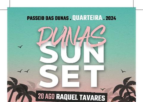 O “Dunas Sunset” no âmbito da animação de Verão em Quarteira, situado no Passeio das Dunas, celebra a estação com uma programação diversificada que inclui apresentações ao vivo de artistas, como Buba Espinho, José Cid, Raquel Tavares, ProfJam e DJ Kamala. De 20 a 21 de agosto, o Dunas Sunset oferece não só música, mas também uma experiência completa de gastronomia e animação, a partir das 19h00.