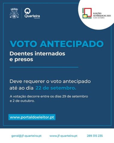 Entre os dias 29 de setembro e 2 de outubro, os votos serão recolhidos pelo Presidente da Câmara Municipal ou por um representante devidamente credenciado.
